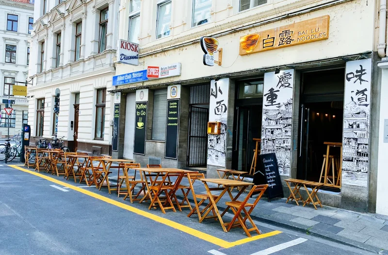 Bai Lu Noodles ist ein beliebtes Restaurant in der Palmstraße 41, 50672 Köln, das sich durch seine authentische asiatische Küche auszeichnet. Die Speisekarte bietet eine Vielzahl von köstlichen Nudelgerichten, darunter handgemachte Ramen und würzige Wok-Variationen, die sowohl Einheimische als auch Touristen anziehen. Die gemütliche Atmosphäre und das moderne Interieur laden zum Verweilen ein und schaffen ein einladendes Ambiente. In der Nähe befinden sich Sehenswürdigkeiten wie der Kölner Dom und die Schildergasse, die ideal für einen Besuch nach dem Essen sind. Bai Lu Noodles ist der perfekte Ort, um eine köstliche Mahlzeit in einer lebhaften Umgebung zu genießen.